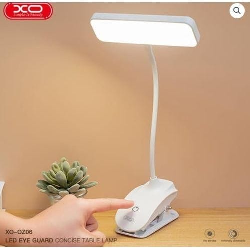خلي مكتبك أو غرفتك مضاءة بأجواء مريحة وعملية مع مصباح المكتب XO OZ06 القابل للشحن. يتميز ببطارية 800mAh تدوم لساعات طويلة، وثلاثة ألوان إضاءة (أبيض – أصفر – طبيعي) تناسب جميع الأوقات. تصميمه مزوّد بمشبك لتثبيت سهل على الطاولة أو السرير، مع زر لمس للتحكم السريع بالإضاءة.