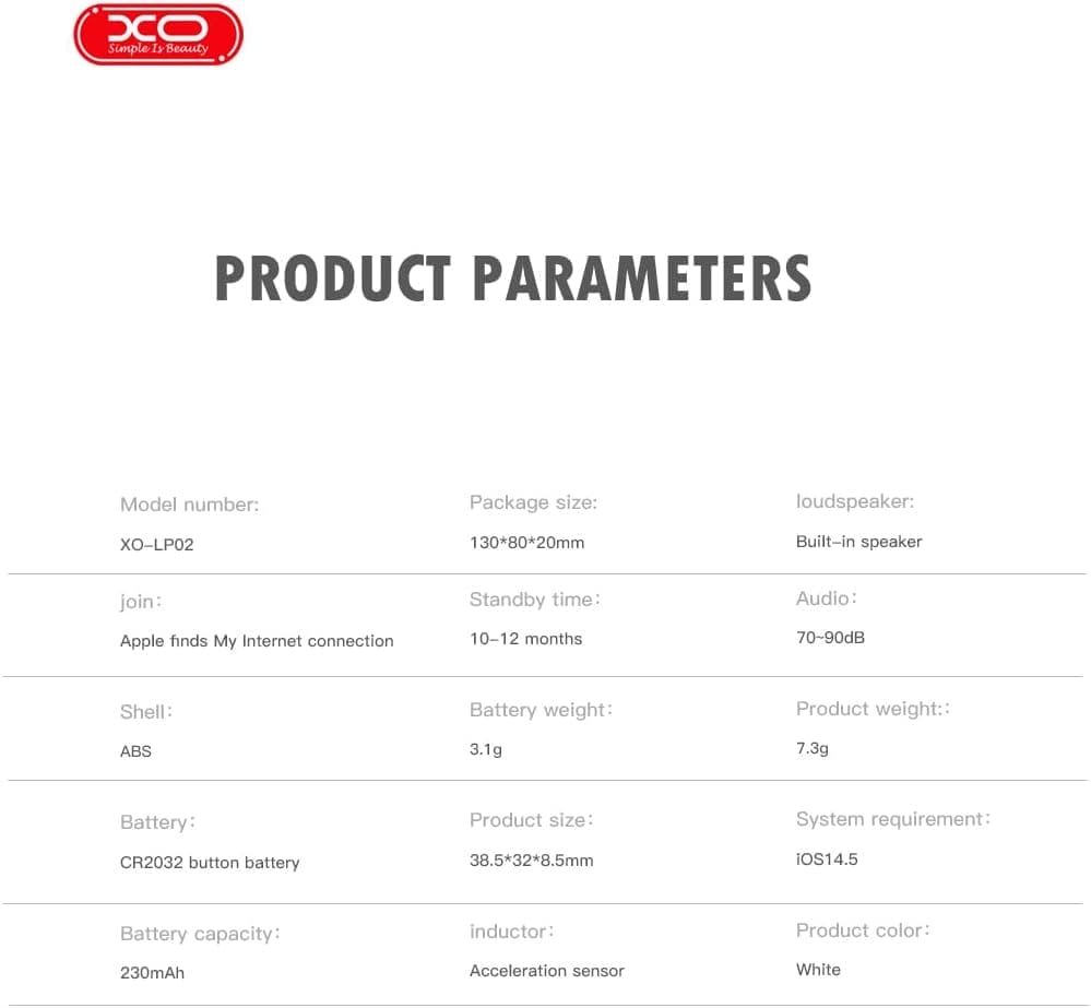جهاز تتبع XO LP02 الذكي المقاوم للفقدان – الاستخدامات لتتبع الأطفال، السيارات، والأغراض الشخصية (متوافق مع iOS)