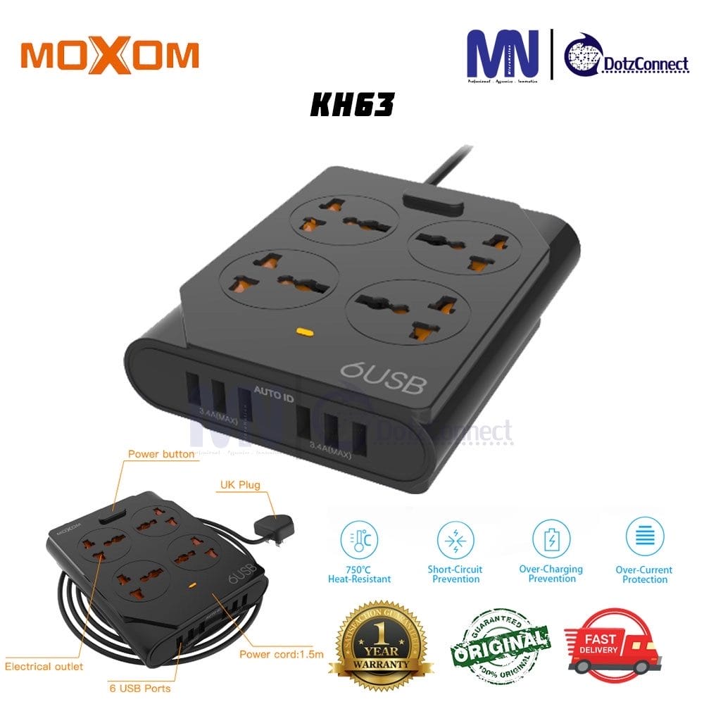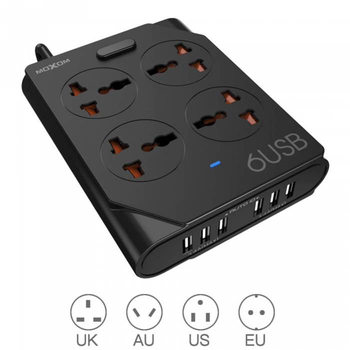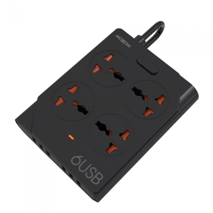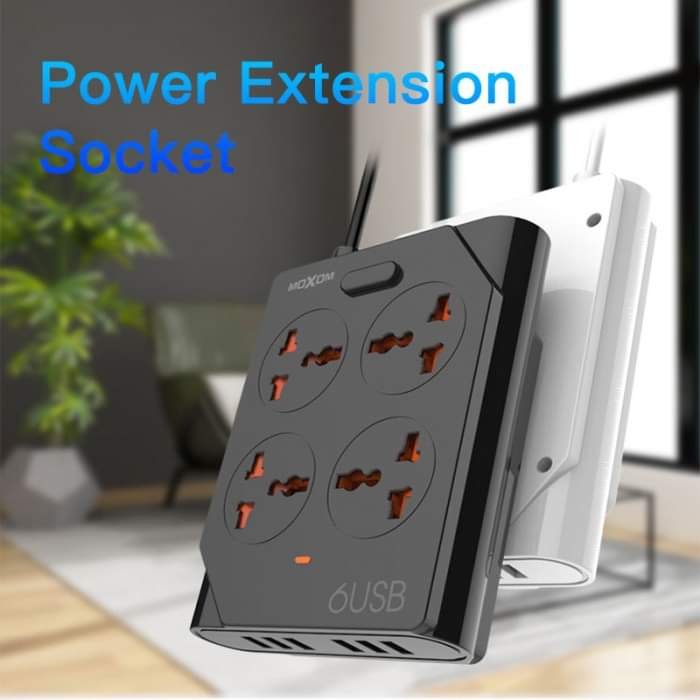 وصلة مشترك كهرباء متعددة المداخل 6 يو اس بي و 4 مقابس كهربائية وسلك بطول 1.5 متر