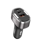 شاحن السيارة هو جهاز مدمج مزود بثلاثة منافذ: ايفون ، تايب سي، ويو اس بي ، مما يتيح لك توصيل الكابل المناسب لشحن أجهزتك المحمولة. بفضل أبعاده الصغيرة، لا يشغل الشاحن مساحة كبيرة في سيارتك. مع قوة عالية تصل إلى 100 واط، يمكنك شحن ثلاثة أجهزة في نفس الوقت، مما يجعله مثالياً للحفاظ على شحن هاتفك أو جهازك اللوحي أثناء التنقل.