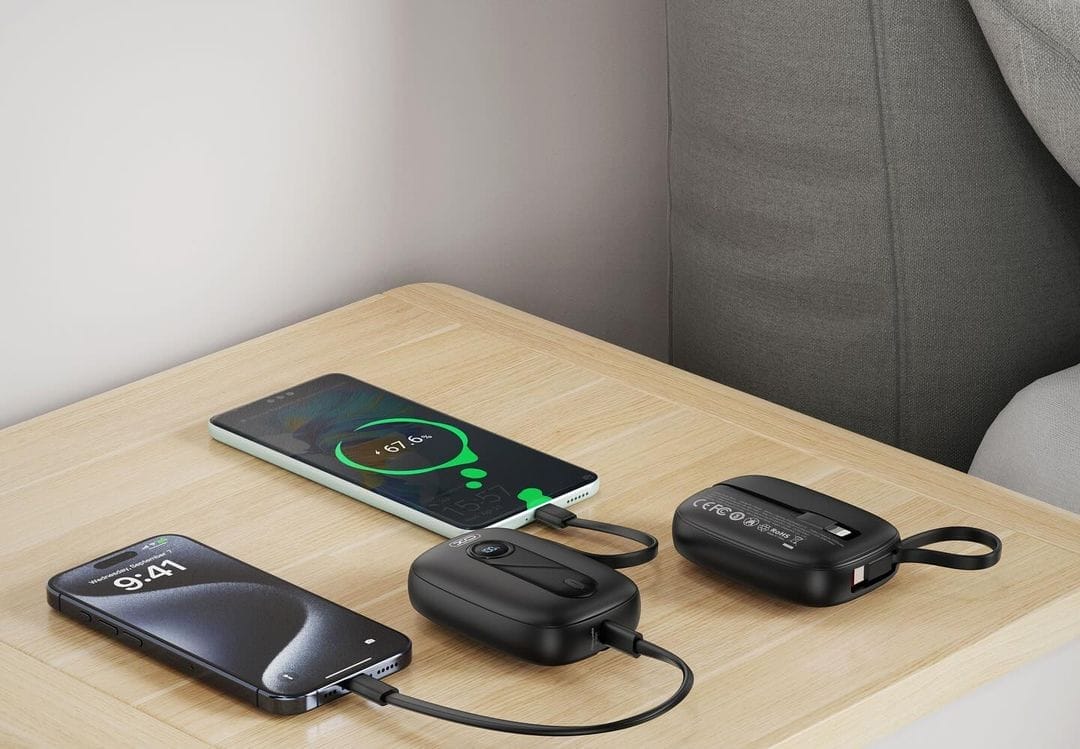 باور بانك ميني من كاليفورا شوب، بسعة 10000mAh، مناسب للشحن السريع والمستمر لأجهزتك أثناء التنقل. يتميز بتصميم صغير ومريح مع كابل مدمج، مما يجعله مثاليًا للاستخدام اليومي أو أثناء السفر.